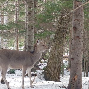 途中、ガイドの方の説明を聞きながら、キツネやシカの足跡やクマの爪跡のついた木を見たりして進んで行きました。ツアー終盤には、エゾシカの群れを見ることができ、最後には間近に雄のエゾシカに遭遇しました。日常では体験することのできない自然を満喫することが出来ました。