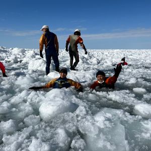 参加者の方とジャンプして流氷を割ったり、シャーベット状の海の中に入ったりする体験はとても面白かったです。