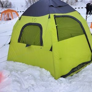 雪が降り風が強い中でしたが、個別のテント内で楽しくワカサギ釣りができました!