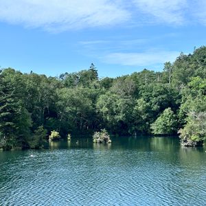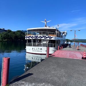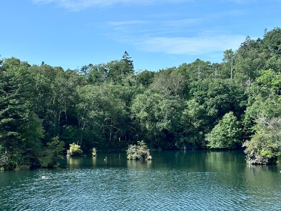 中湖ではボートを観光ポイントの間近まで寄せてくれます。綺麗な十和田湖ブルー、カルデラ崖、謎穴などなど楽しい解説で楽しめます。中湖からの帰りは行きと違って免疫ができているのか驚きはないですが、到着手前の八の字?旋回は凄すぎて笑ってしまう。楽しい!
