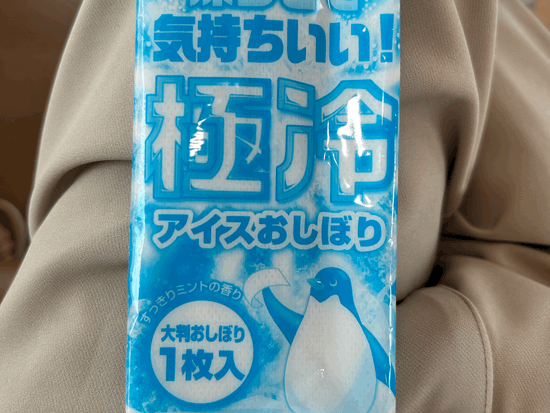真夏でしたが、暑さ対策で塩飴、冷たいおしぼりを用意してくださっています。