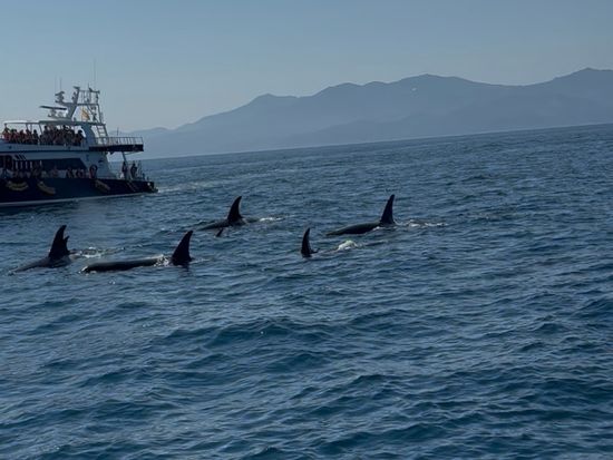 シャチの群れを一番に見つけてくれたので、長時間近くで見れました。