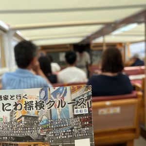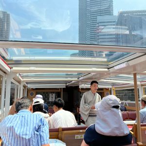 大阪万博へ行く前日になにわ探検ツアーにお友達と参加しました。時折窓を全開にしてくれて外気を感じながらクルージングを楽しめました。とてもゆったりと、落語家さんの軽快なおしゃべりとても楽しかったです(*^▽^*)炎天下で電車を使って大阪城へ行くのを断念していましたが、ちらっと水上から見れたのも良かったです。ありがとうございました♪