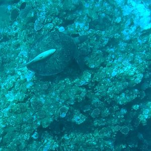 台風の影響で心配していましたが、雨と風がある中でも十分楽しめることができました。見どころのあるポイント、ポイントで船を止める、回転するなど運転は見事プロの技でした!サメや熱帯魚、珍しい珊瑚も見れましたし、「幸せの象徴」ウミガメにも出会うことができて大変満足しました。