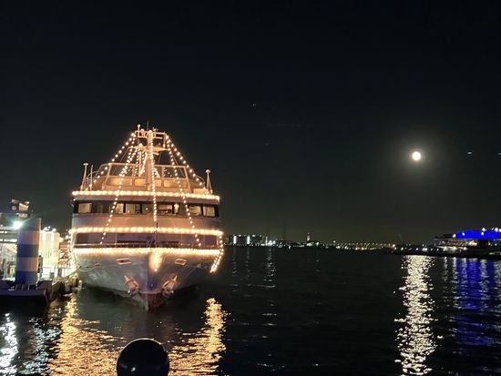 誕生日会をするためにディナークルーズを予約。搭乗から夜空にキラキラ光る船にテンションがあがります。天気も良く冬なのでくっきり夜景を楽しめて、シャンパンとコース料理を満喫!全客席が埋まってなくてうまくプライベート空間が保たれているのがよかった。有料で誕生日ケーキを用意してくれたので良い記念になりました。生演奏とかあればもっと最高かも!