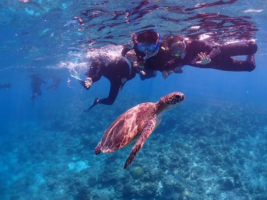 今回シュノーケルで、ウミガメに会えました。最高です!