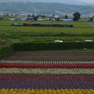• トロッコ列車と花畑