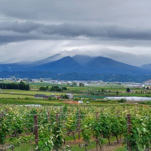 • カンパーナ六花亭からのワイン畑と十勝連峰