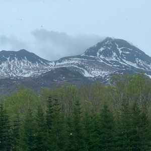 あいにくの雨で、知床峠では風も強くお天気悪すぎでしたが、ガイドさんがなんともプラス思考のかたまりのかたで、天気悪くってもこんなによく見える羅臼岳❗️こんな天気なのに寒くない❗️と