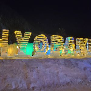 札幌観光バスのライトアップで幻想的な夜の支笏湖氷濤まつり / 夜の支笏湖氷濤まつり