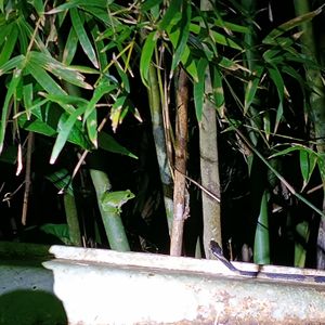 最後にアマミアオガエルとガラスヒバァがにらみ合う決定的瞬間にも遭遇!結果はなんとカエルの気合い勝ちでヘビが退散しました。