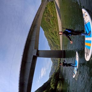 初SUPでしたが、面白く丁寧なレクチャーとサポートで立ったり漕いだりも問題なくできました。川を下って行くので流れが急なところもあり、もちろん落ちましたがそれもまた楽しかったです。流れが緩やかなところで思い思いに漕いだり川や空、木々の音を聴いたり、戦ったり(?)と本当に素敵な時間でした。