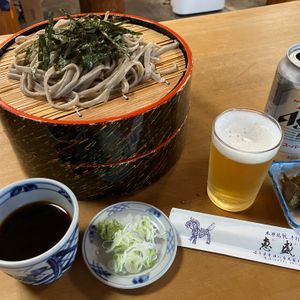 手打ちそば、ビールには漬物が付きと最高