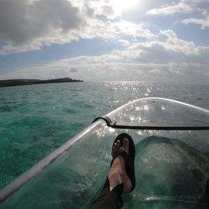 カヤックは全面透明なので、漕ぎながら海中を鮮明に見ることができ、足下にスマホをおいて動画撮影すると魚なども動きながら撮影することが出来ます。