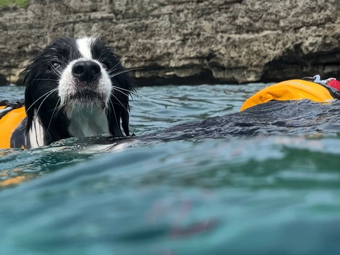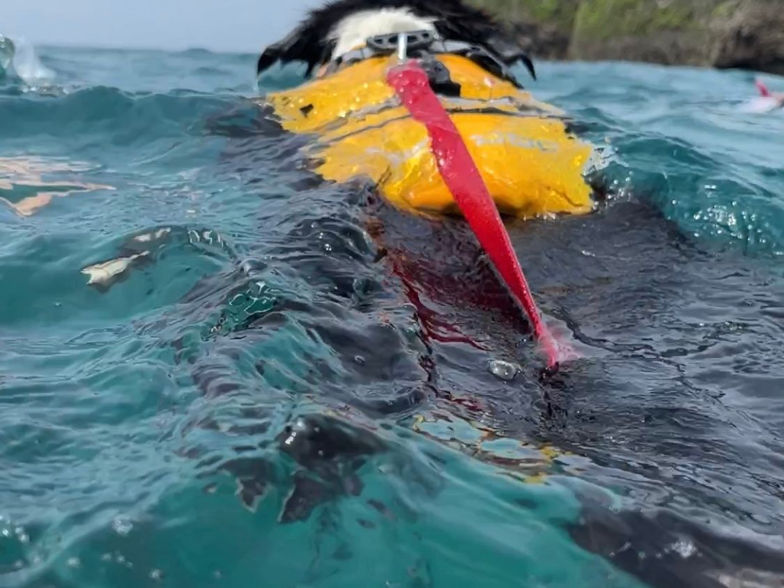 台風の影響でまだまだ海は荒れ気味でしたが、ポイントを最後まで探して頂き、とても綺麗な海の中を遊泳する事ができました。ワンコ達はただ泳がされているだけですが(笑)、お留守番させる事なくワンコと一緒の時間を過ごす事が出来て飼い主は非常に満足でした。