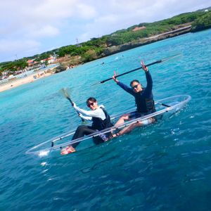 今回初めてのカヤックでしたが、親切に漕ぎ方を教えてくださったお陰で最後には自分たちで楽しく海を回ることができました!!透明なカヤックなので、カヤックの下を覗けば、サンゴとお魚がたくさん見えました。困った時はガイドのお兄さんが助けてくれるので、安心です!!ドローン撮影もとっても綺麗な映像で、私たちの写真を最後に総編集した映像も作ってくださってとっても嬉しかったです!初めての宮古島でしたが最高の思い出ができました!ありがとうございます!