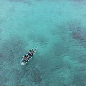 スタッフさんに、未だ慣れない無様な操縦のために最初に行った珊瑚礁では船底を覗く余裕など全くなかったことを伝えると、そこ迄向い風の中ロープを繋いで漕いで連れて行ってくれました。お陰でなんとかカラフルな熱帯魚を観ることが出来ました。妻はニモを見つけて感動しきり。