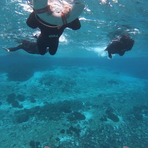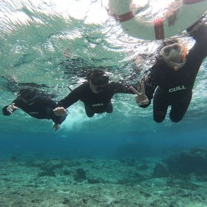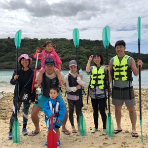 天気は曇り空でしたが透明度のある海を満喫することができました。青いスズメダイやニモもたくさん見ることができました。初カヤックでしたが家族と喧嘩になりながら漕ぎ(笑)後半は上手にコントロールできるようになりました。スタッフの対応がとても良く感謝しています。ドローンの映像が素晴らしく我が家の家宝にします。実際に船から見ている景色よりもドローンの映像で見た方が一段と綺麗に見えました!