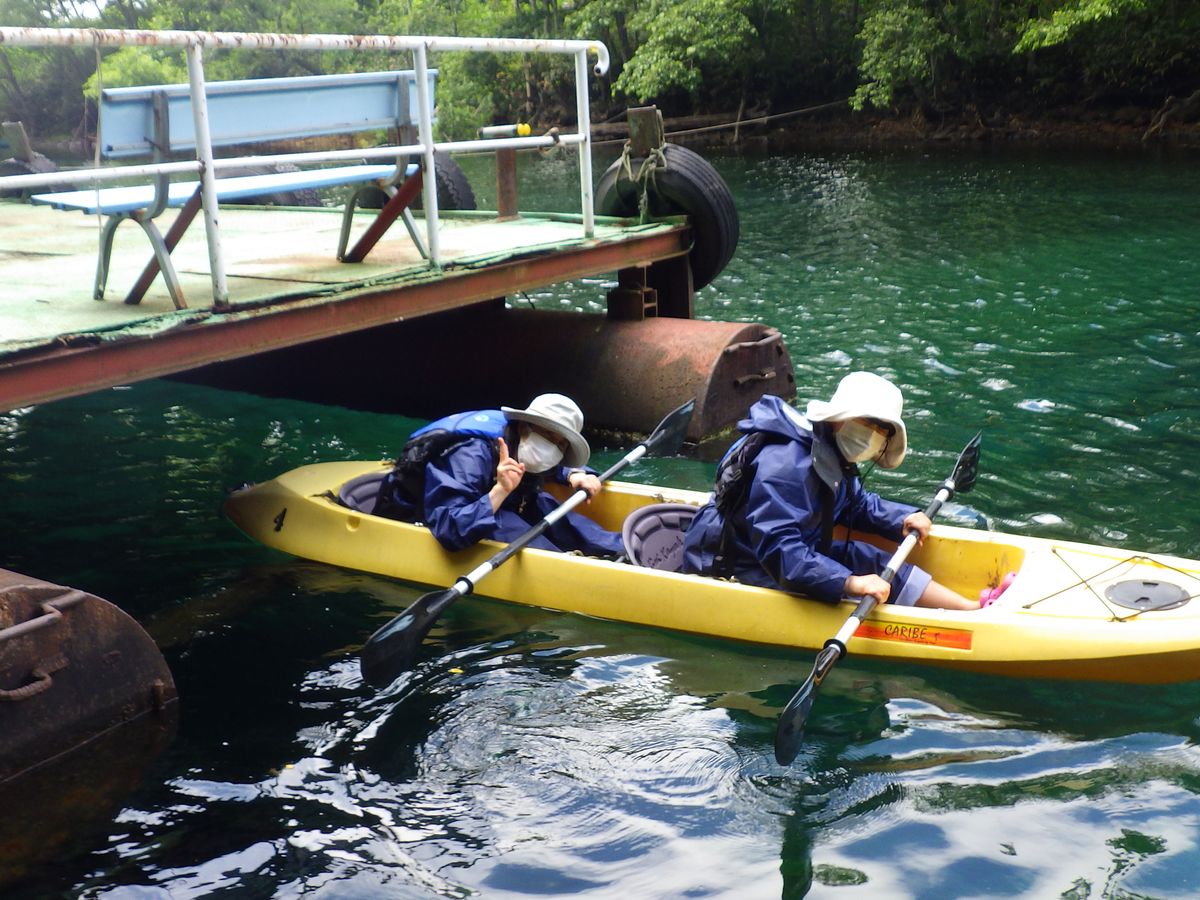 参加時は2組だけで、水上は密ではないためマスクを外して美味しい空気をたくさん吸えました。カヤック前後の店内ではもちろんマスク、消毒で感染対策してありました。