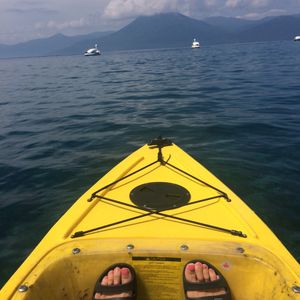 それでもクリアカヤックだったので、カヤックの外だと光の反射や波でよく見えない湖の中も、股の間からよく見えて楽しめました!