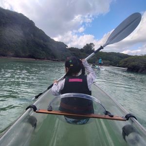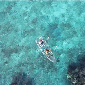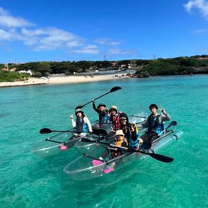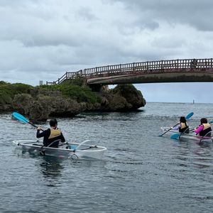 クリアカヤック体験に参加しました、大変親切にして頂きました。前日夕方の電話とは別に、当日の朝雨天だった為再度お電話を頂いて、コンディションについて説明を受けた際に元々予定していた日程から翌日に変更可能ですよとご提案頂きました。当日はまず参加者全員で漕ぎ方を練習、その後冒頭30分はスタッフさんによる撮影や魚のいるスポットの案内があり、後半30分は自由時間でした。あいにく、途中で船酔いし体調が悪くなってしまいましたが、スタッフさんの方から気がついて下さってお声掛け頂き、早めに陸に上がりましたが、皆さん最後まで親切で大変助かりました。ドローン撮影のデータもAirDropですぐにお送り頂けて、大変満足です。また是非利用したいと思いました。ありがとうございました!