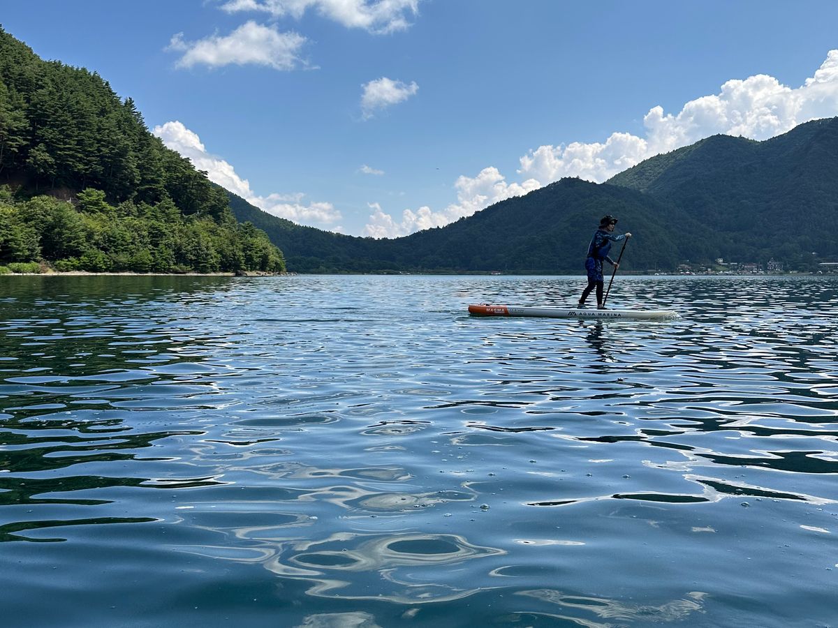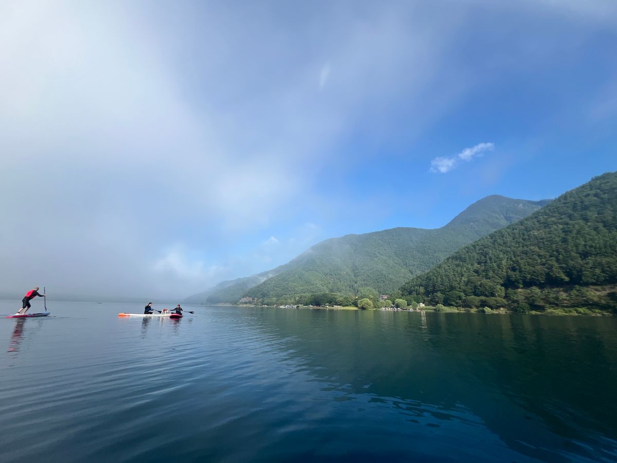 ガイドのおおさんのレクチャーがとても楽しくて2時間があっという間でした。優雅な早朝のクルージングをイメージしていましたが、実際は何度もダイブするくらいハードで、それがまた楽しめました。富士五湖でSUPをするなら自信を持ってこちらををお勧めします。