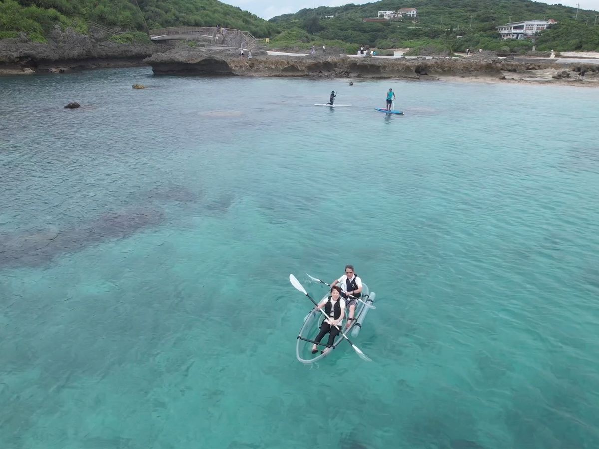 海の底まで見えるクリアカヤック体験はとても神秘的で、初めての経験ができてすごく楽しかったです。途中であいにくの雨に見舞われてしまいましたが、インストラクターの方々が柔軟に対応してくださったのでとても楽しむことが出来ました。また、最後にはドローンでの撮影もしていただき、動画まで作っていただき大満足100点満点のツアーでした!また宮古島を訪れる機会があった際には、サップ等の別のアクティビティも是非体験してみたいと思いました!