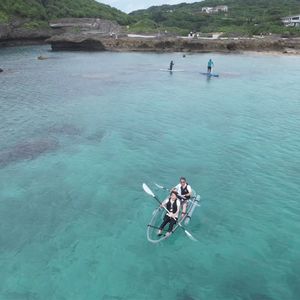 初めてのクリアカヤック!66〜70歳のオバさん3人旅でのアクティビティ、大丈夫かなぁと少し不安でしたが全然大OK、本当に楽しかったです。ドローンでの美しい撮影でとても思い出になりました。スタッフの方々も皆さんとっても優しくて明るくいい方ばかりでした。