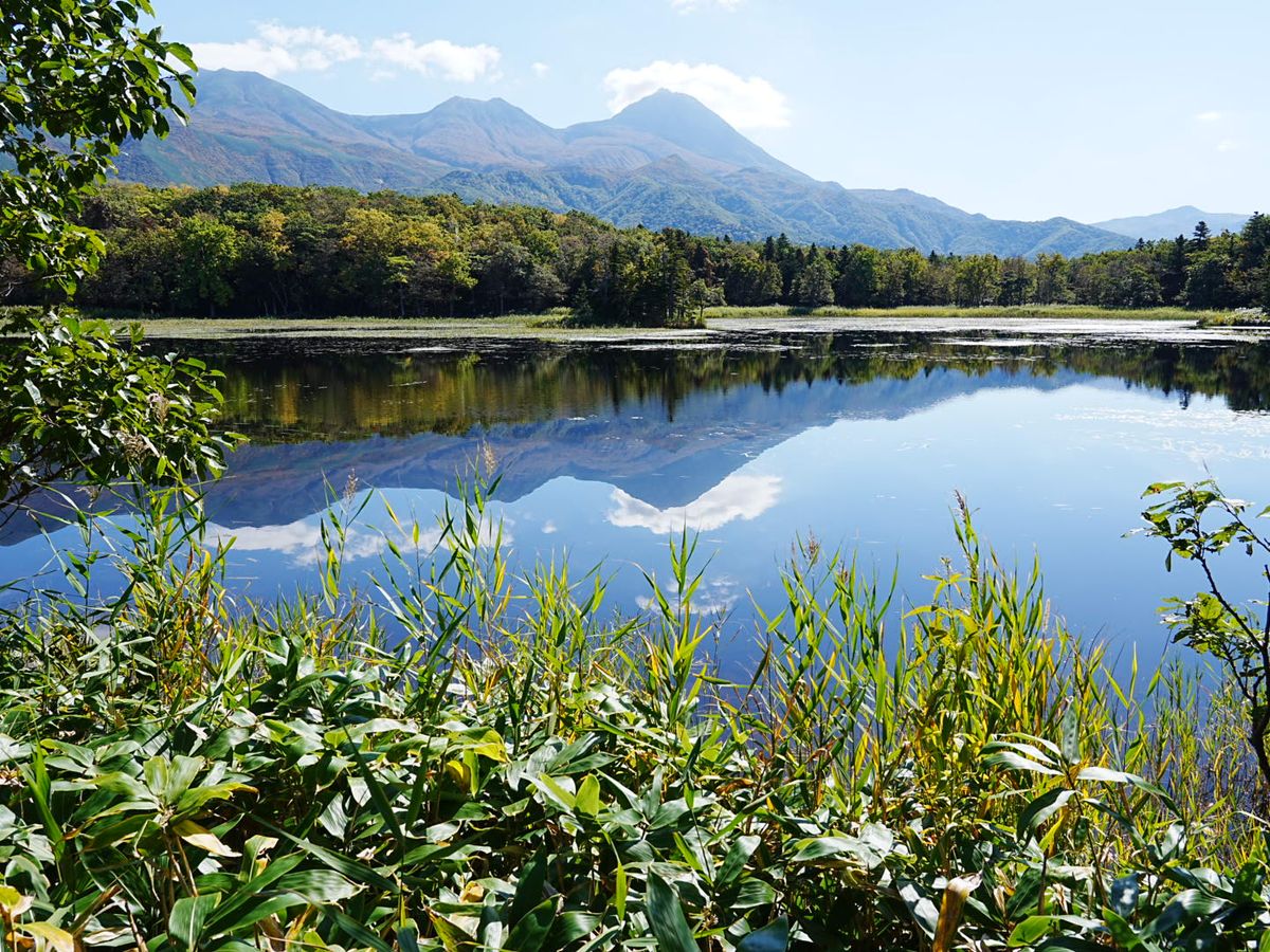 風もなく、湖面に知床の山が映って良い写真がとれました。