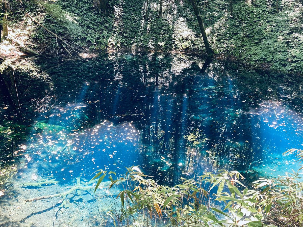 青池の青さや、湖面の反射がとても綺麗でしたね!