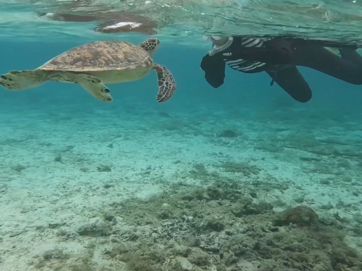 永年の夢だった海ガメさんと泳ぐ。しかも3匹も一緒に泳いでくれて、幸せです。
