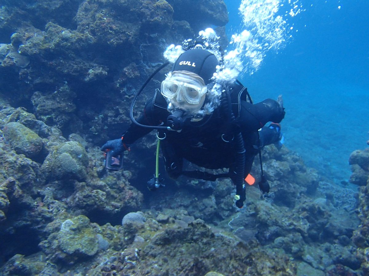 小雨・水温15⁻17度でまだ肌寒さを感じる季節ですが、5mm厚のスーツに加えてフードベストまで準備頂き、ぽかぽかダイブでした。体験コースなので浅めの水深10m未満のポイントでしたが、海底までは勿論のこと、水平方向もかなり遠くまで見通せる透明度で良かったです。また、要所要所 眼鏡への浸水や耳抜き等のケアや、珍しい魚を見つけたらガイドもしてくれました。潜り終了後には楠川温泉に案内いただき、潮落として身体を温めて解散。大変満足です。