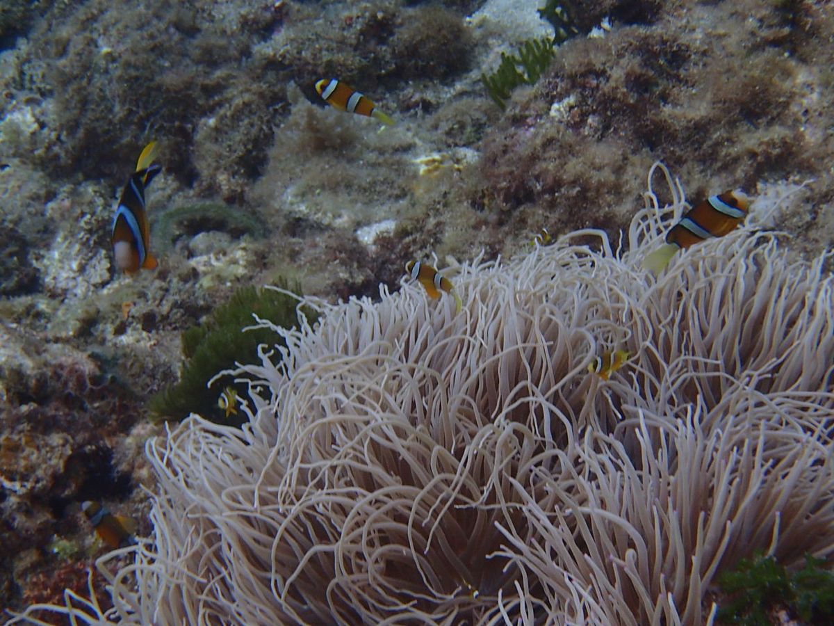 水の中はすごく透明で、周りを泳ぐ魚や珊瑚、イソギンチャクまでが色鮮やかでカラフルで、まるで、大きなキャンパスの中に居るような感覚でした、、泳いでいる海ガメも遠目でちらっと見ることもできましたし、自分自身もその仲間になった気分で海の中をめいいっぱい楽しみ、浮遊することができました。