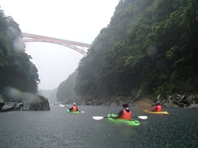 雨のカヤックは梅雨時期ならばスタンダード^^