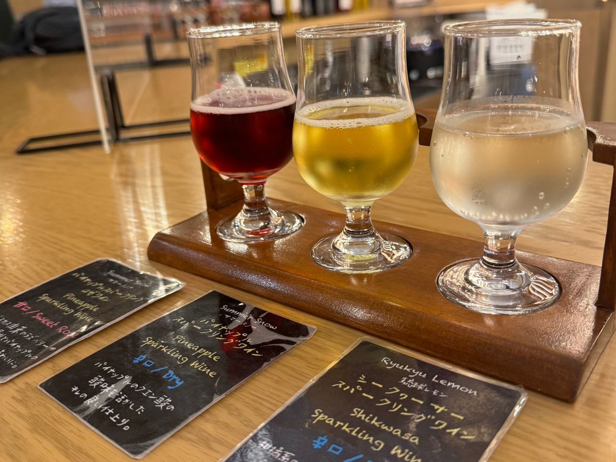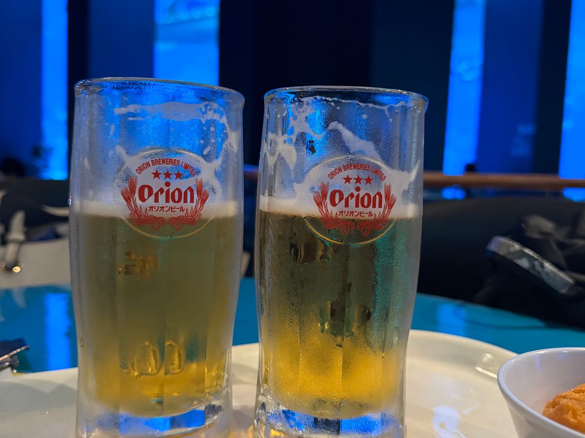 入場料も入ったツアー料金なので、レンタカーで高速代を払って行くより楽でお酒も楽しめる!と参加しました。参加者は半分以上は海外の方で、添乗員さんが日本語と英語で観光スポットのオススメ商品や見どころを手短に説明をしてくれるので、とても参考になります。ちなみにバス車内の沖縄の観光ガイドは乗車後に配布される7カ国語が選べるイヤホンで聴けます。美ら海水族館では水槽の前のカフェで魚を見ながらオリオンビールを飲んだり(このカフェはとても混むので、まず整理券を取ってからゆっくり水槽を見ることをオススメします)、パイナップルパークでは楽しみにしていた3種類のパイナップルスパークリングワインを飲み比べたり、パイナップルケーキの試食をしたりと充実でした。時々雨が降りましたが、添乗員さんが傘を貸してくれたりしていました。ツアー後にそのまま那覇空港から帰る予定でスーツケース持参での参加でしたが、有名な那覇の夕方大渋滞で到着時間より遅くなりそうでしたが、途中のゆいレール駅前で下ろして頂いて、ゆいレールの発車時間まで調べて下さって本当に助かりました。添乗員さん、バス運転手さん、お世話になりありがとうございました。沖縄の楽しい思い出になりました。