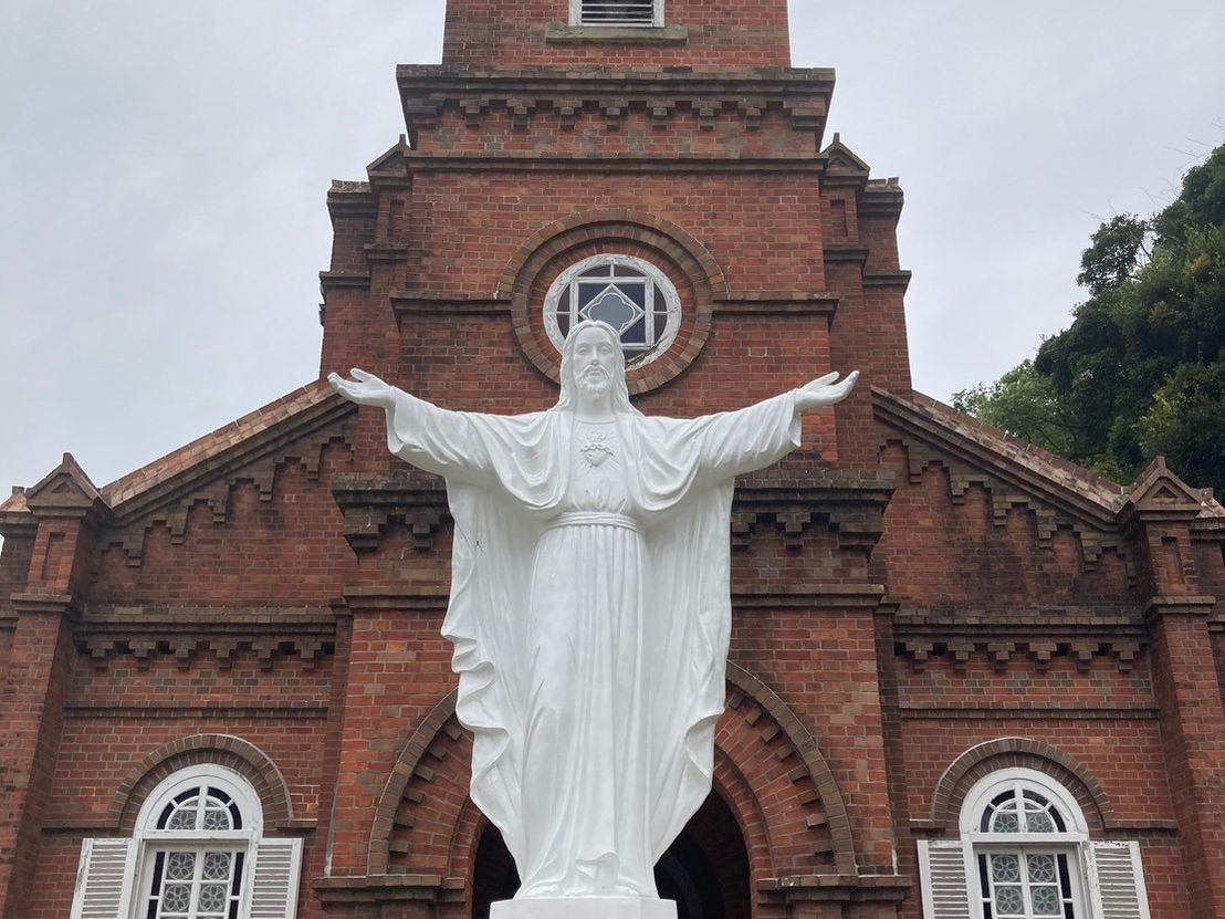 最後に頭ケ島に渡って頭ケ島教会を回って、教会以外のスポットでは「五島祈りの龍馬像」にも連れて行ってもらいました。番岳のある半島の付近には行きませんでしたが、中通島全体を広く拝見することができました。