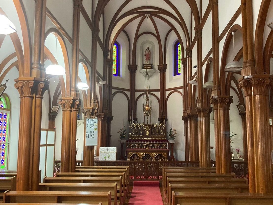 港に戻ってタクシーに乗り換えてからは、桐教会、大浦教会、中ノ瀬教会、大曾教会、鯛ノ浦教会と回って行きます。そのときどきの教会で運転手さんが教会備え付けのスタンプを押していて、きっと実際に教会を回っていることを報告するかわりなのだろうと思っていたら、最後に私たちにそのスタンプ集をくれました。私たちのかわりに押していたのです。そのほかにきれいに撮った写真を印刷しラミネート加工にしたものをいただくこともできました。教会ではどこからどの方向で撮ったらいいかなどアドバイスもいただきました。