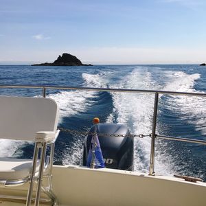 åå 忥ã®å€ã«æ¥ã«æãç«ã£ãŠäºçŽãæžãŸããŠ10æ45åã®åã«åå ããŸããã30åçšè¹ã«ä¹ããŸããããå³¶ã«è¿ã¥ãã«ã€ããŠæµ·ã®æ°Žãéãéã£ãŠããŠæµ·åºãèŠããã»ã©ã®ãšã¡ã©ã«ãã°ãªãŒã³ã®æµ·ïŒ