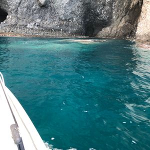 勝納公園に車停めて、道路向かい(海を背中にして右側から道路下くぐって行けます)日本生まれのロシアの若者が受付してくれました。(現金払いましたが、VELTRAでクレジット決済済みに自分で気付き返金してもらいました)13:30発で、10分位遅れました(前後の予定は余裕持った方が良い)乗り場に1個、仮設トイレありますが、先にどこかで済ませて来た方がいいです。荷物はなるべく小さいほうがいいです。(ジュース飲みながら…という感じではないです)かなり揺れます、私は酔いやすいので、辛かった。でも、青の洞窟はすっごい綺麗でした!(キャビン出て甲板の上に上がって見ることも可能。投稿写真よりもっともっと綺麗です!))少しだけ、しぶきがかかります。(カッパ着るほどではない)船がキャビンなので、日差し避けられ良かった。(寒い時もいいと思う)70代の両親も楽しかったと言ってました。