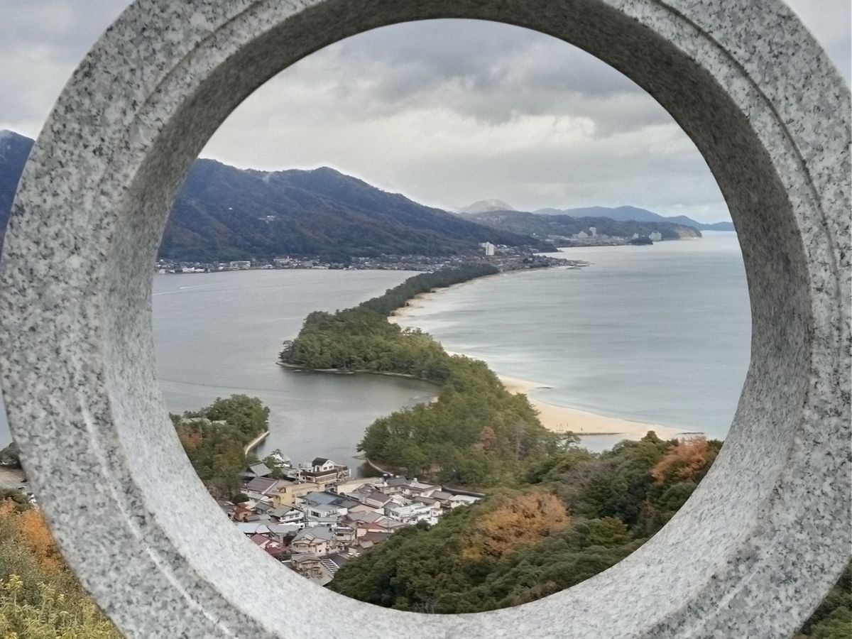 土曜日で道が空いていたのか、大阪からのバスが集合時間より早く到着していて、すぐに着席できました。添乗員さんは、男性でハットがステキな周(しゅう)さん。日本語・英語・中国語で案内してくれました。とても気配りが上手で、笑顔もステキで、安心してツアーに参加できました。天橋立では写真撮影もしてくださってありがたかったです。お昼に、天橋立のビューランドで【板わかめうどん】をいただきました。お出汁が効いていて美味しかったな~。智恩寺近くで【智恵の餅】をいただきました。柔らかなお餅にこし餡がたっぷり載っていて、美味しかったです。お天気が、丹後地方のこの時期特有の、雨が降ったり止んだりで、かなり寒かったです。これからの時期は、ぜひ傘を忘れずに持って行くといいですよ。