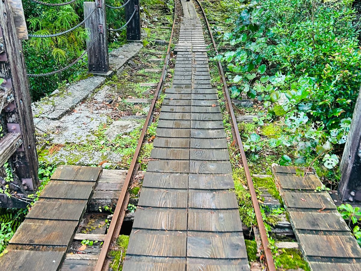 ガイドの方からちゃんトロッコ道が、終わり登りになると