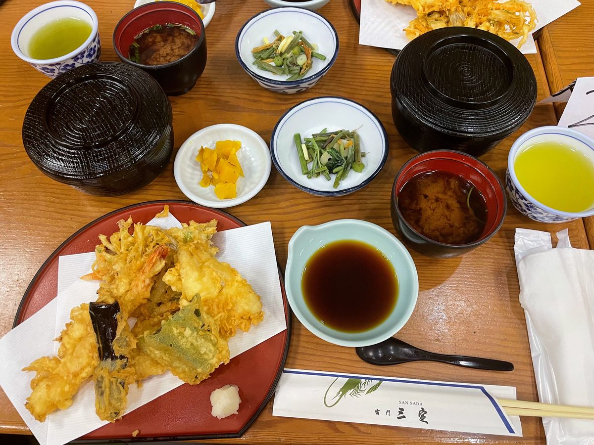 真夏の川下りも日除けがあったので猛暑だったが大丈夫だった。昼食は個人で予約なしで、散策途中に天龍寺の精進料理「篩月」で楽しめた