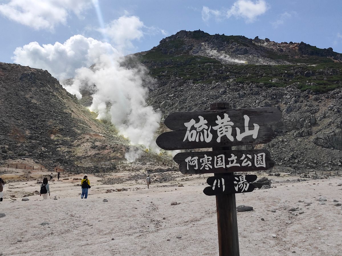 お天気に恵まれて、快晴の摩周湖、阿寒湖、屈斜路湖、硫黄山…を回れました。地図ではそう見えませんが、北海道は広い。レンタカーで回るのもいいですが、初心者にはガイドさんのうんちくを聴きながらピンポイントで効率よく観光できるバスツアーは本当に有り難い。空港下車が可能なので、最終日に参加されるのがおすすめ。