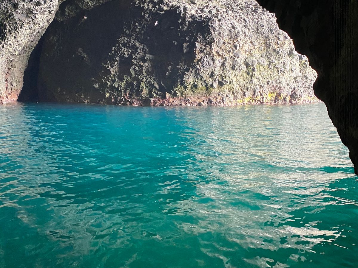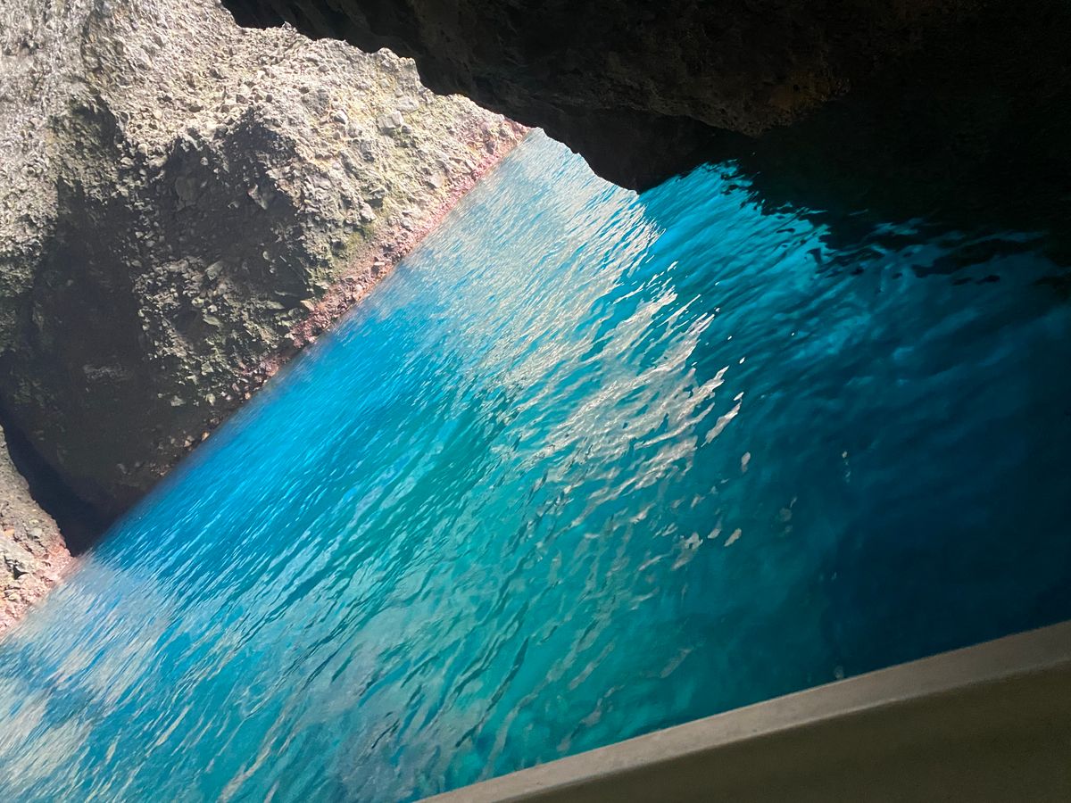 天気が曇りで少し天候の心配をしていたのですが、洞窟の中のライトブルーがとても綺麗に見え、晴れよりも絶好のタイミングだったと教えてくださり嬉しい気持ちになりました!