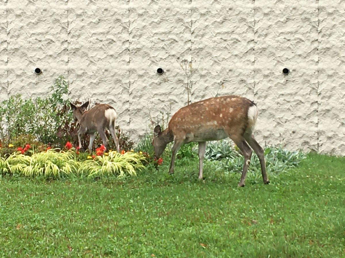 触れるような距離にシカが山から降りてきました!