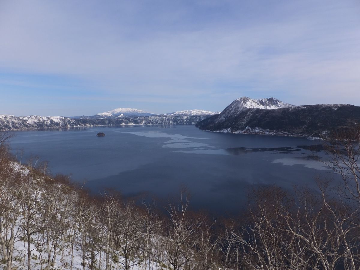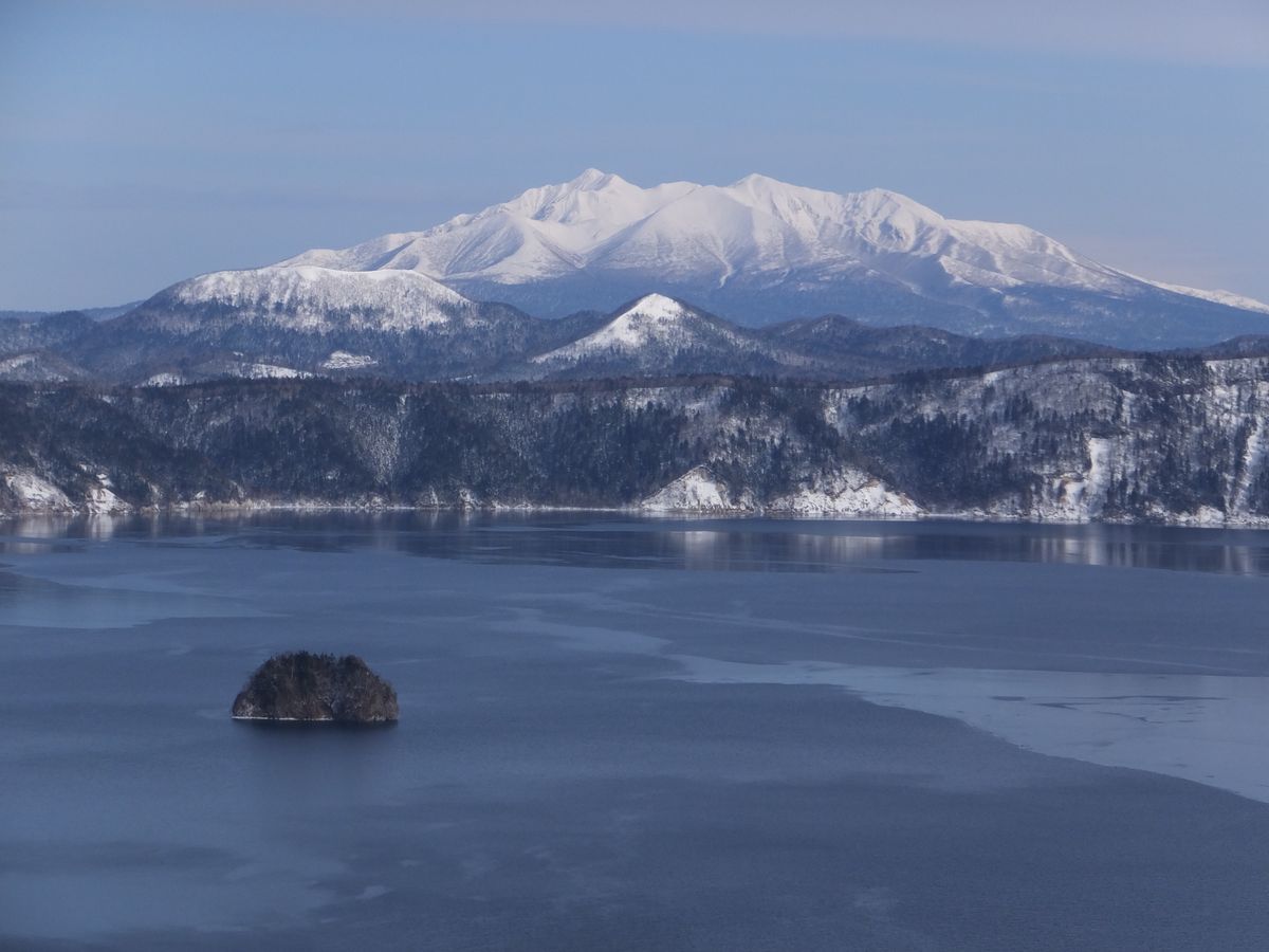 冬の摩周湖は寒いですが真白な山と濃いブルーの湖で素晴らしい景色でした。