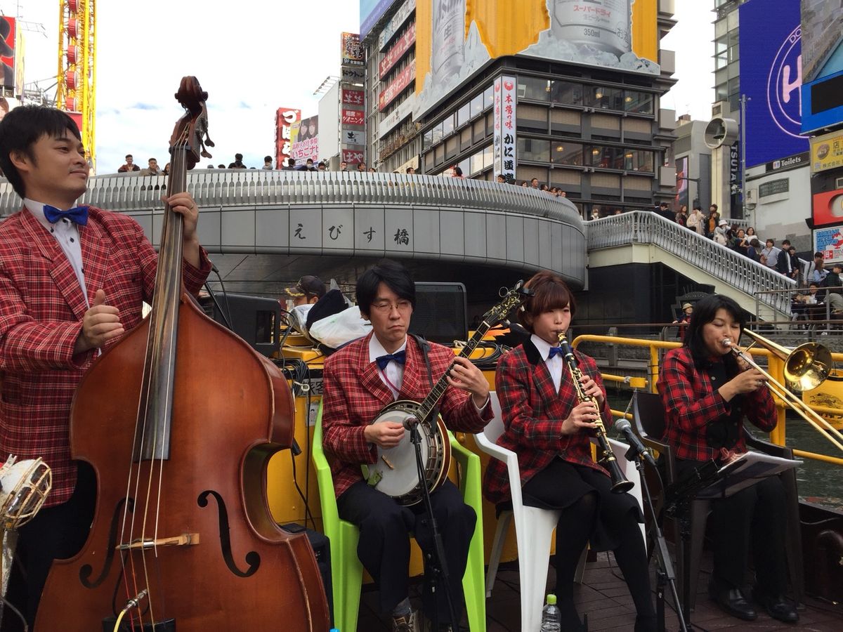 昼間に参加したが、道頓堀のグリコ看板を下から眺められるのは面白い