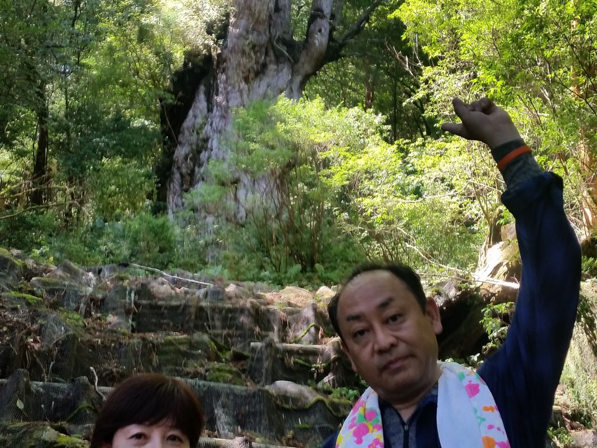 屋久島が世界遺産になった当初から憧れだった縄文杉。今回ご縁があってやっと訪れる機会ができましたが、私達夫婦はすでに50代。普段特に運動の習慣もない私たちに22㎞、11時間の行程は不安だらけでしたが、事前に電話で問い合わせた際に対応してくださったツアー会社の女性は、たいへん親切でフレンドリーな方で、“このツアーで間違いない”と確信ができました。当日のツアーでは、ガイドの駒野さんが、年齢も身体能力もバラバラのメンバーにまんべんなく気遣いをしてくださり、8人のメンバーそれぞれが安心し、リラックスしてつらく長い行程を楽しんでいることを常時感じることができました。屈強で頼もしいガイドの駒野さんはもとより、ツアー参加者の若い皆さんに、心より感謝しています。みなさんの楽しいおしゃべりや、歌声によって勇気づけられ、つらい行程をなんとか乗り越えることができました。みなさんのうちの誰一人が欠けても、中年の私たちが念願の縄文杉に会うことはできなかったと思います。この場をお借りし、心よりお礼申し上げます。