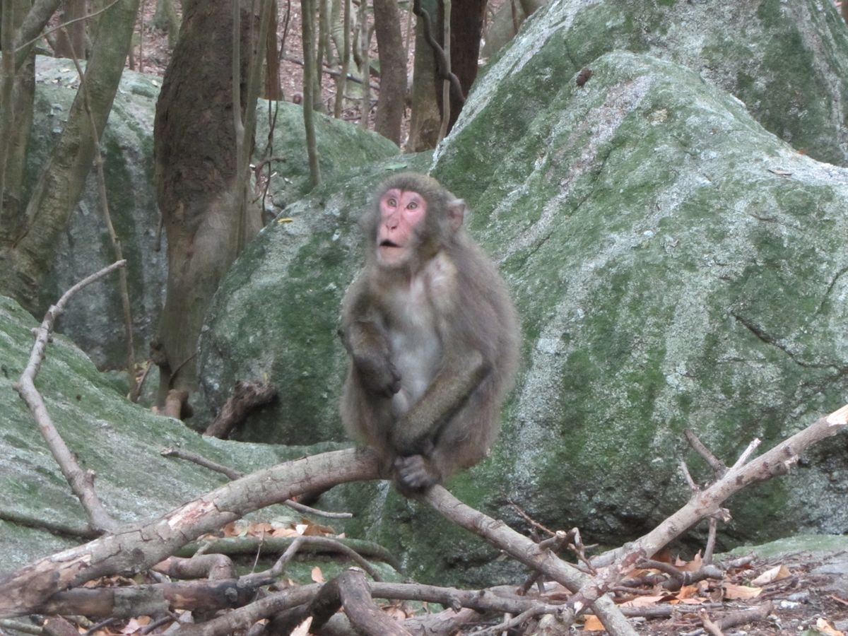 大石林山では野生の小さいイノシシ親子に遭遇するサプライズ。