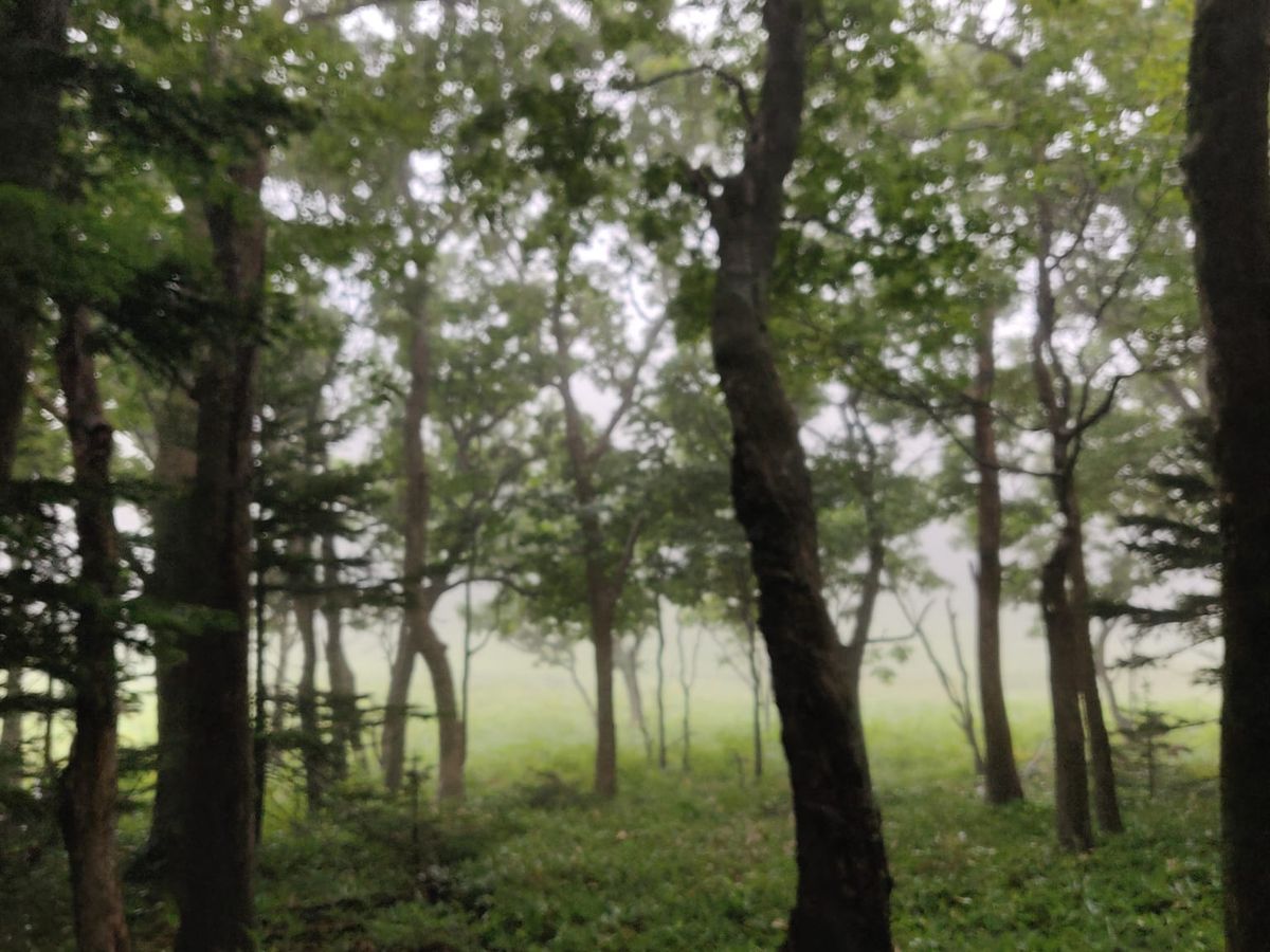 I think the scenery and colors of the forest on a rainy day are very beautiful.